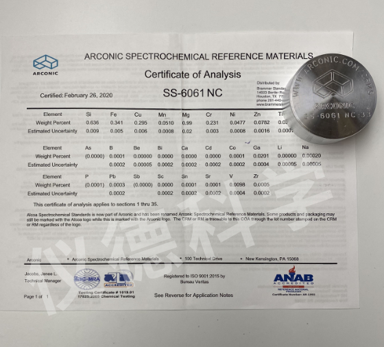 鋁合金AA SS-6061,適用于德國斯派克直讀光譜儀,熱電ARL直讀光譜儀,德國OBLF直讀光譜儀,德國布魯克直讀光譜儀,島津直讀光譜儀,牛津直讀光譜儀等各大品牌!